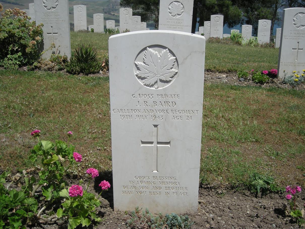 On 10 July 1943, following the successful conclusion of the north African campaign in mid May, a combined allied force of 160,000 Commonwealth and American troops invaded Sicily as a prelude to the assault on mainland Italy. The Italians, who would shortly make peace with the Allies and re-enter the war on their side, offered little determined resistance but German opposition was vigorous and stubborn. The campaign in Sicily came to an end on 17 August when the two allied forces came together at Messina, but failed to cut off the retreating Axis lines. Agira was taken by the 1st Canadian Division of 28 July and the site for the war cemetery was chosen in September for the burial of all Canadians who had been killed in the Sicily campaign. Agira Canadian War Cemetery contains 491 Commonwealth burials of the Second World War.