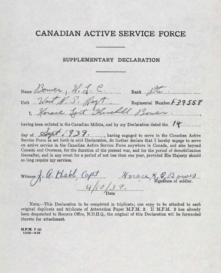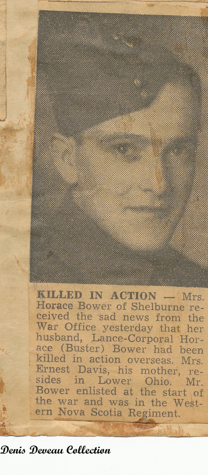 Son of Frank L. and Lillian R. (née Davis) Bower, of Freeport, Digby Co., Nova Scotia; Married Oct 14, 1939 to Florence Jeanette Bower, of Freeport. Brother to five other brothers and 2 sisters; Wendell Chester, Thomas Robert, Harold Sydney, Frank Leslie and Kenneth Leslie. Hazel Gertrude and Sylvia Augusta.