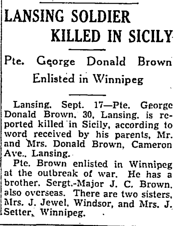 On 10 July 1943, following the successful conclusion of the north African campaign in mid May, a combined allied force of 160,000 Commonwealth and American troops invaded Sicily as a prelude to the assault on mainland Italy. The Italians, who would shortly make peace with the Allies and re-enter the war on their side, offered little determined resistance but German opposition was vigorous and stubborn. The campaign in Sicily came to an end on 17 August when the two allied forces came together at Messina, but failed to cut off the retreating Axis lines. Agira was taken by the 1st Canadian Division of 28 July and the site for the war cemetery was chosen in September for the burial of all Canadians who had been killed in the Sicily campaign. Agira Canadian War Cemetery contains 491 Commonwealth burials of the Second World War.