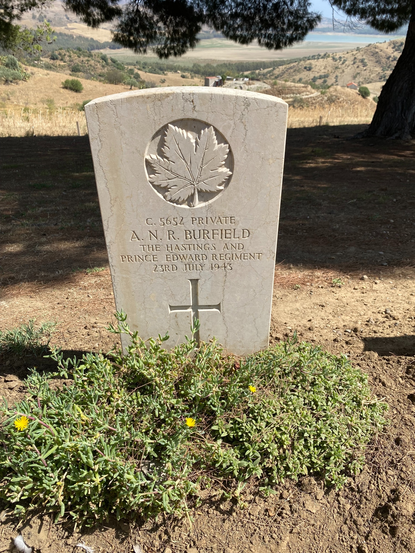 On 10 July 1943, following the successful conclusion of the north African campaign in mid May, a combined allied force of 160,000 Commonwealth and American troops invaded Sicily as a prelude to the assault on mainland Italy. The Italians, who would shortly make peace with the Allies and re-enter the war on their side, offered little determined resistance but German opposition was vigorous and stubborn. The campaign in Sicily came to an end on 17 August when the two allied forces came together at Messina, but failed to cut off the retreating Axis lines. Agira was taken by the 1st Canadian Division of 28 July and the site for the war cemetery was chosen in September for the burial of all Canadians who had been killed in the Sicily campaign. Agira Canadian War Cemetery contains 491 Commonwealth burials of the Second World War.