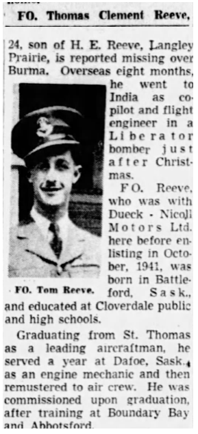Digital gallery of Flying Officer Thomas Clement Reeve