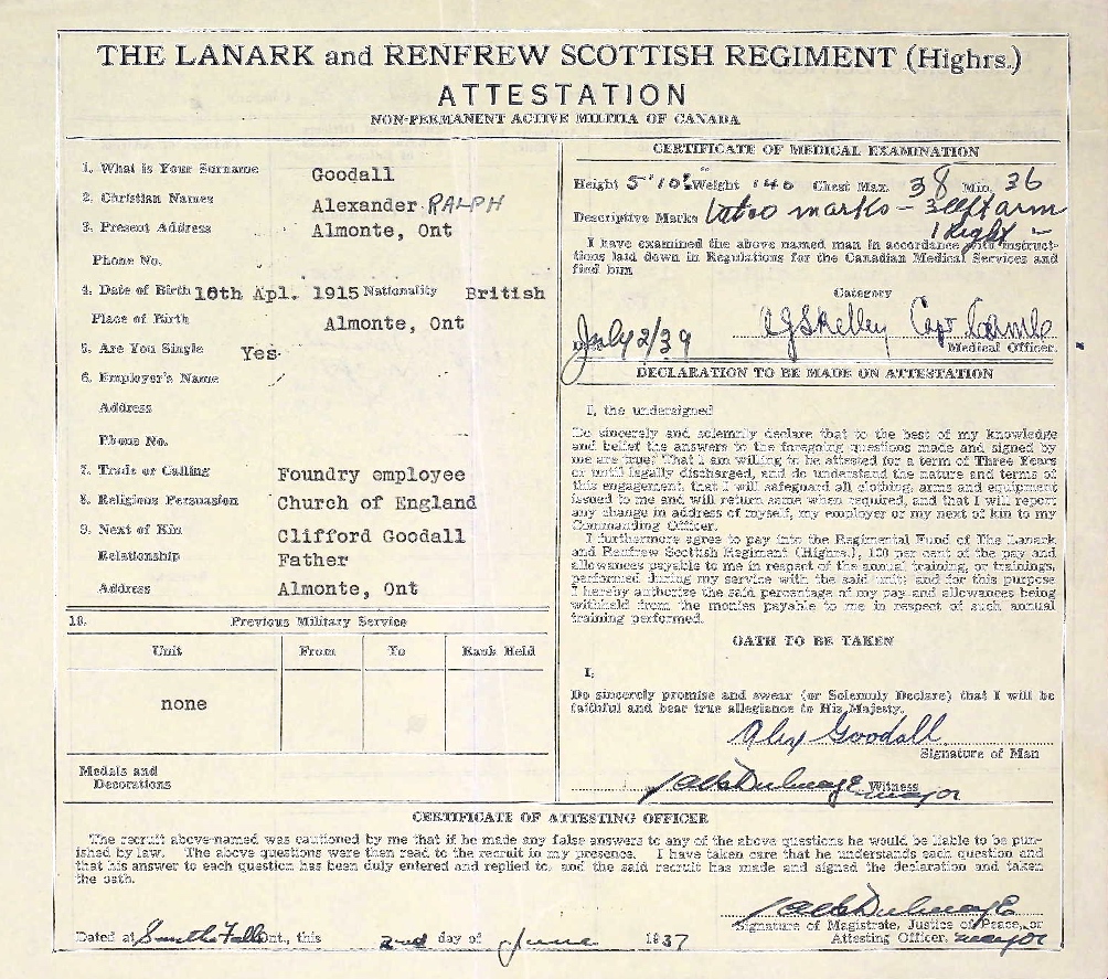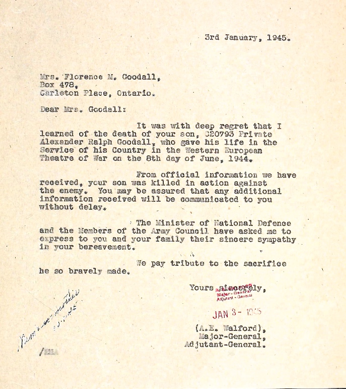 Son of Clifford and Florence Maud Goodall, of Carleton Place, Ontario.