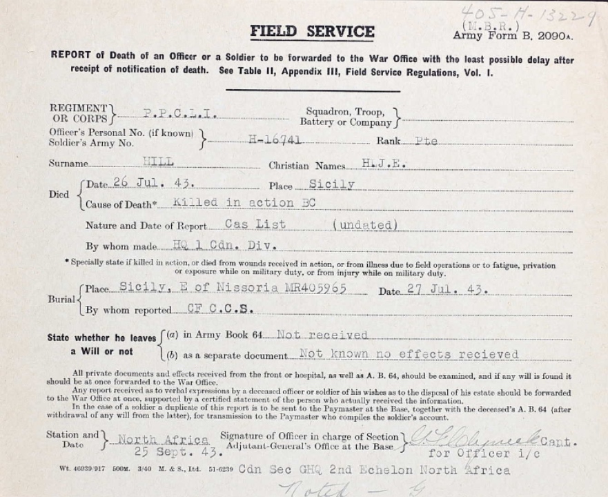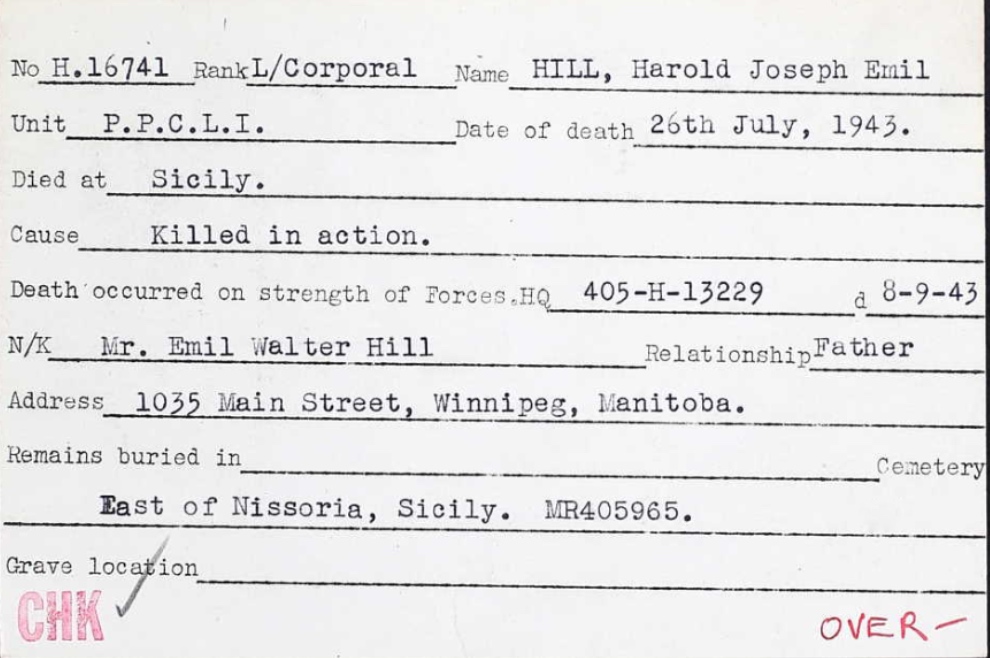 On 10 July 1943, following the successful conclusion of the north African campaign in mid May, a combined allied force of 160,000 Commonwealth and American troops invaded Sicily as a prelude to the assault on mainland Italy. The Italians, who would shortly make peace with the Allies and re-enter the war on their side, offered little determined resistance but German opposition was vigorous and stubborn. The campaign in Sicily came to an end on 17 August when the two allied forces came together at Messina, but failed to cut off the retreating Axis lines. Agira was taken by the 1st Canadian Division of 28 July and the site for the war cemetery was chosen in September for the burial of all Canadians who had been killed in the Sicily campaign. Agira Canadian War Cemetery contains 491 Commonwealth burials of the Second World War.