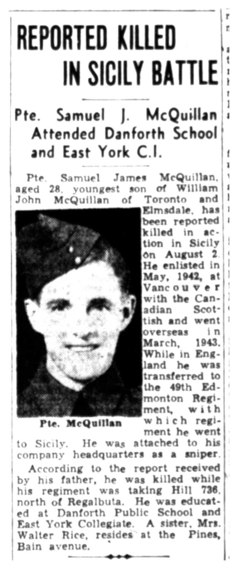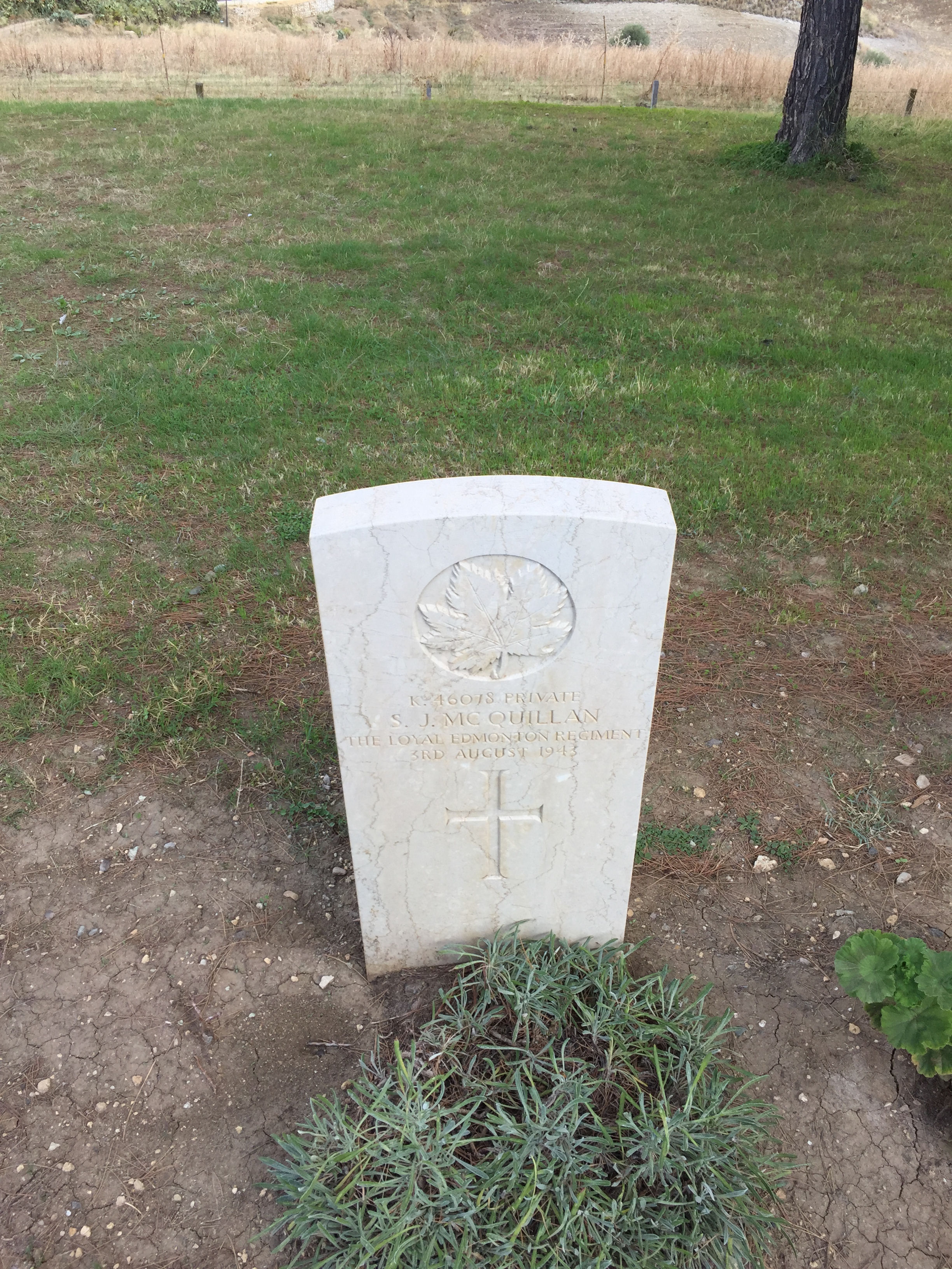 On 10 July 1943, following the successful conclusion of the north African campaign in mid May, a combined allied force of 160,000 Commonwealth and American troops invaded Sicily as a prelude to the assault on mainland Italy. The Italians, who would shortly make peace with the Allies and re-enter the war on their side, offered little determined resistance but German opposition was vigorous and stubborn. The campaign in Sicily came to an end on 17 August when the two allied forces came together at Messina, but failed to cut off the retreating Axis lines. Agira was taken by the 1st Canadian Division of 28 July and the site for the war cemetery was chosen in September for the burial of all Canadians who had been killed in the Sicily campaign. Agira Canadian War Cemetery contains 491 Commonwealth burials of the Second World War.