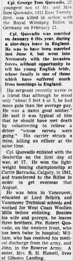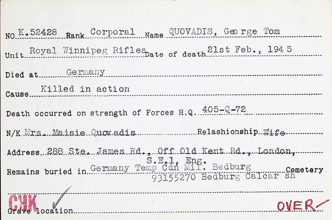 Son of Samuel Efstathios and Josephine Quovadis. Husband of Maisie Quovadis, of Southwark, London, England.