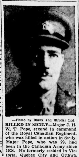 The province of British Columbia honoured Major Pope by naming Pope Island in his honour.
