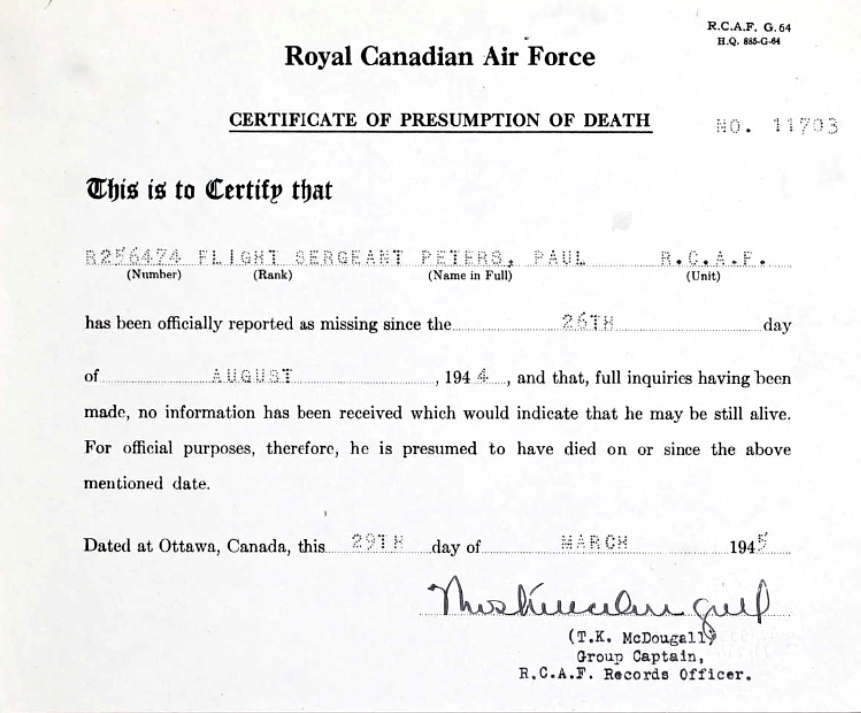 Digital gallery of Flight Sergeant Paul Peters