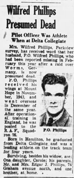 Digital gallery of Pilot Officer Wilfred James Phillips