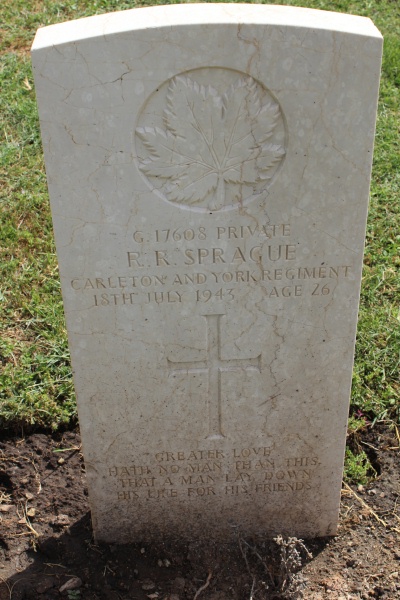 On 10 July 1943, following the successful conclusion of the north African campaign in mid May, a combined allied force of 160,000 Commonwealth and American troops invaded Sicily as a prelude to the assault on mainland Italy. The Italians, who would shortly make peace with the Allies and re-enter the war on their side, offered little determined resistance but German opposition was vigorous and stubborn. The campaign in Sicily came to an end on 17 August when the two allied forces came together at Messina, but failed to cut off the retreating Axis lines. Agira was taken by the 1st Canadian Division of 28 July and the site for the war cemetery was chosen in September for the burial of all Canadians who had been killed in the Sicily campaign. Agira Canadian War Cemetery contains 491 Commonwealth burials of the Second World War.