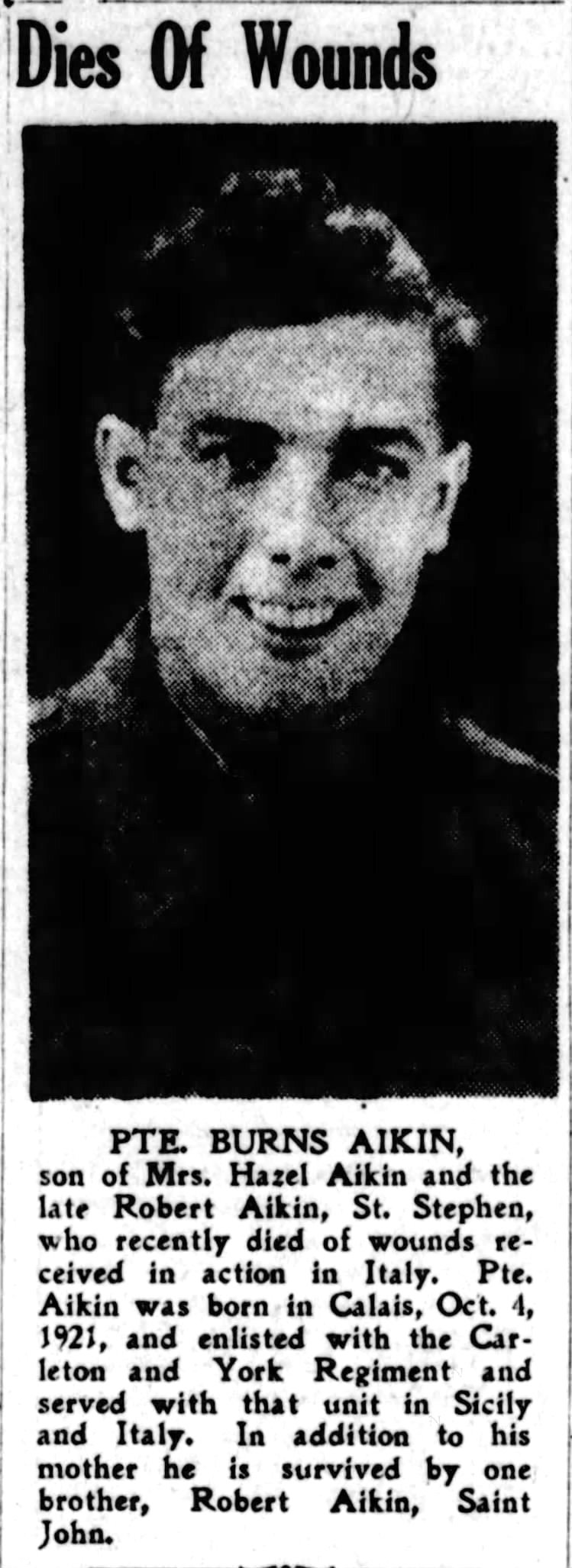 Son of Robert Aiken, and of Hazel Aiken, of St. Stephen, New Brunswick.