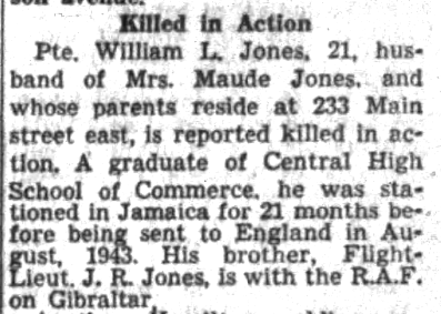 Son of Lewis and Ellen Jones, of Hamilton, Ontario; husband of Maude Jones, of Hamilton.