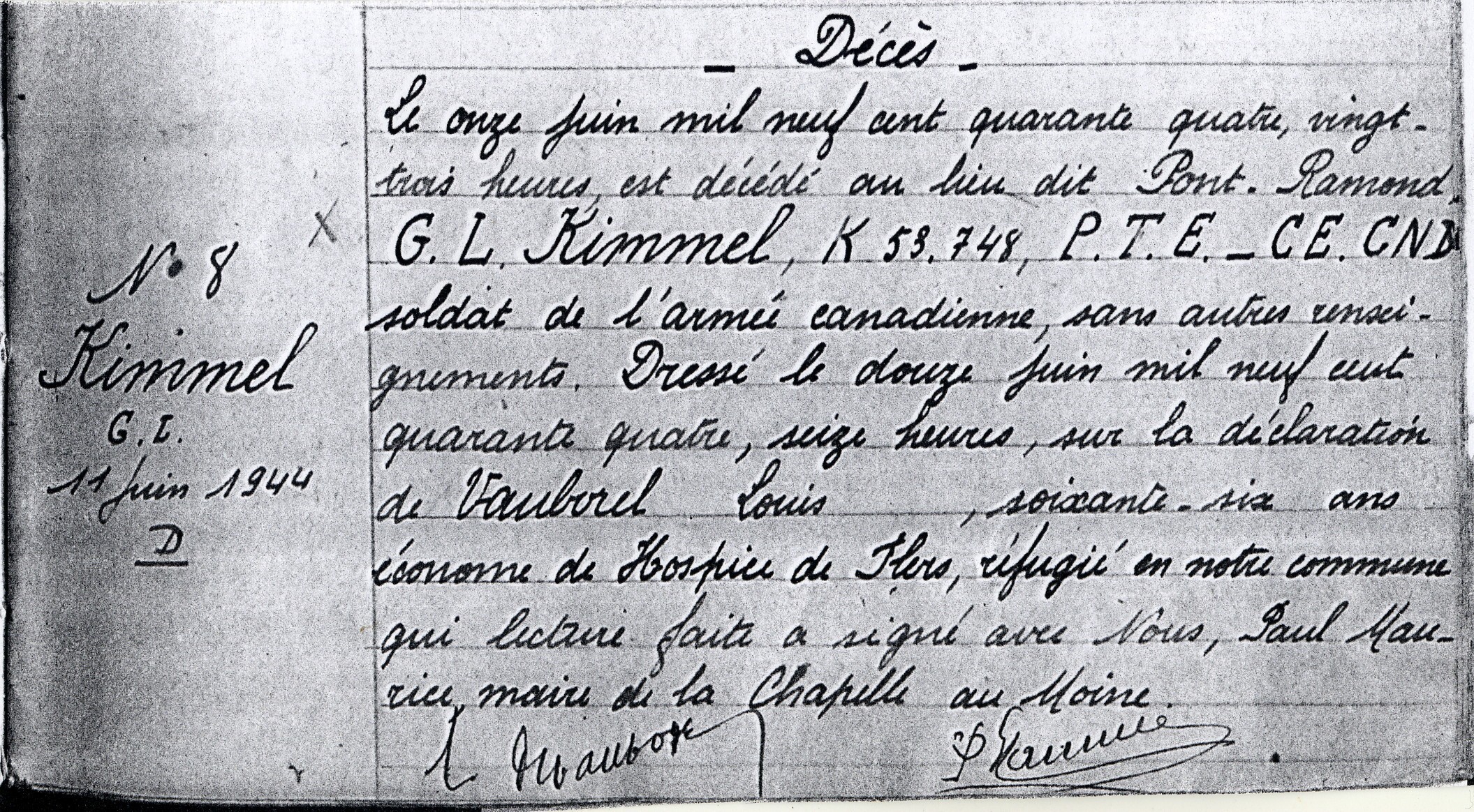 Brother of Harry Leonard Kimmel of Grand Forks, British Columbia, Richard Kenneth Kimmel deceased June 18, 1944 and Clifford Howard Kimmel deceased December 5, 1944.