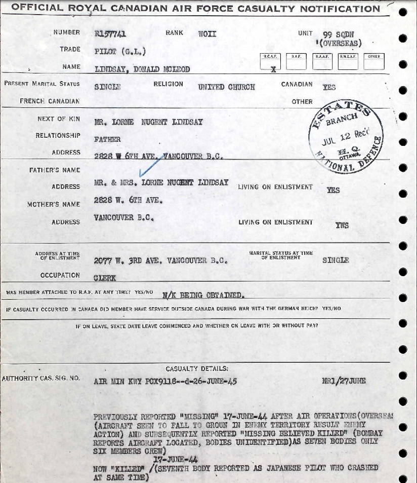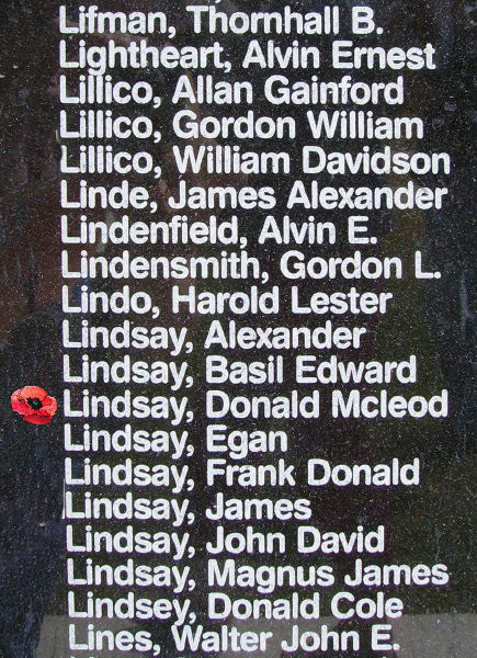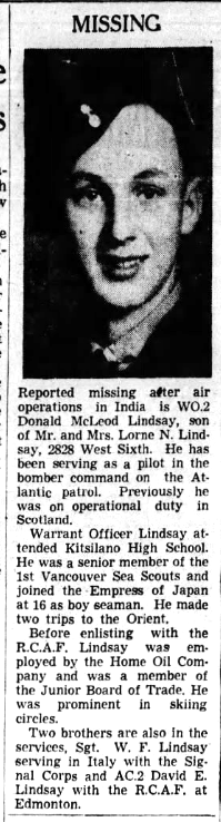 Son of Lorne N. Lindsay and Edith M. Lindsay, of Vancouver, British Columbia.