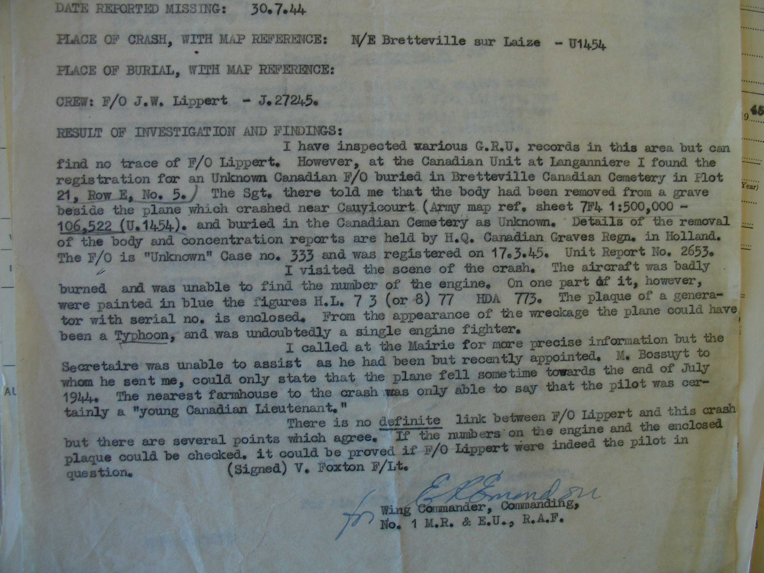 Digital gallery of Flying Officer John William Lippert
