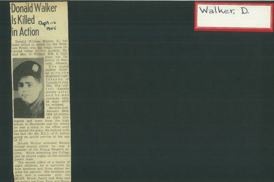Son of Orley and Jessie Walker, of Galt, Ontario.