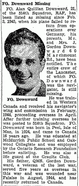 Digital gallery of Flying Officer Alan Quilliam Downward