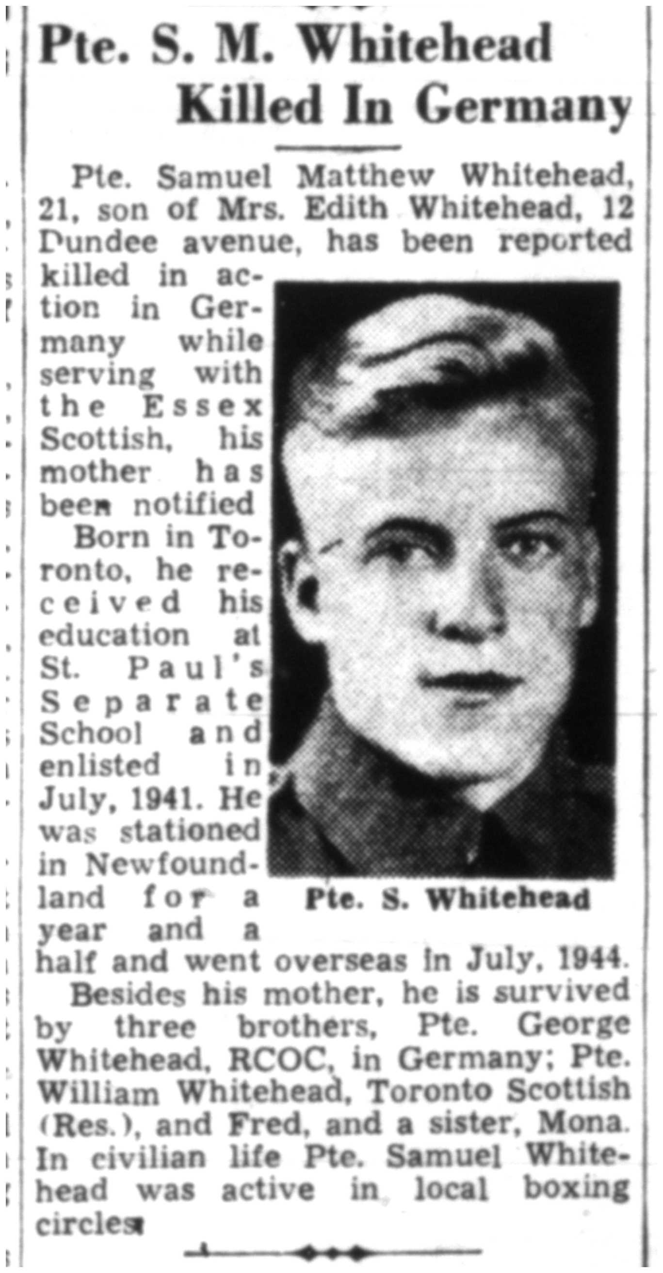 Digital gallery of Private Samuel Mathew Whitehead