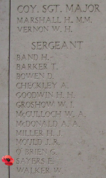 HERE ARE RECORDED NAMES OF OFFICERS AND MEN WHO FELL IN YPRES SALIENT BUT TO WHOM THE FORTUNE OF WAR DENIED THE KNOWN AND HONOURED BURIAL GIVEN TO THEIR COMRADES IN DEATH.