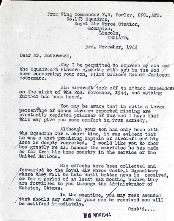 Digital gallery of Flying Officer Robert Jamieson McCormack