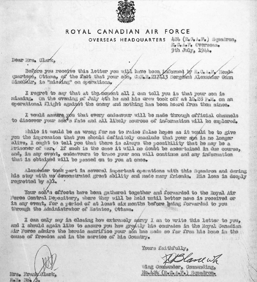 Digital gallery of Pilot Officer Alexander Gunn Sinclair