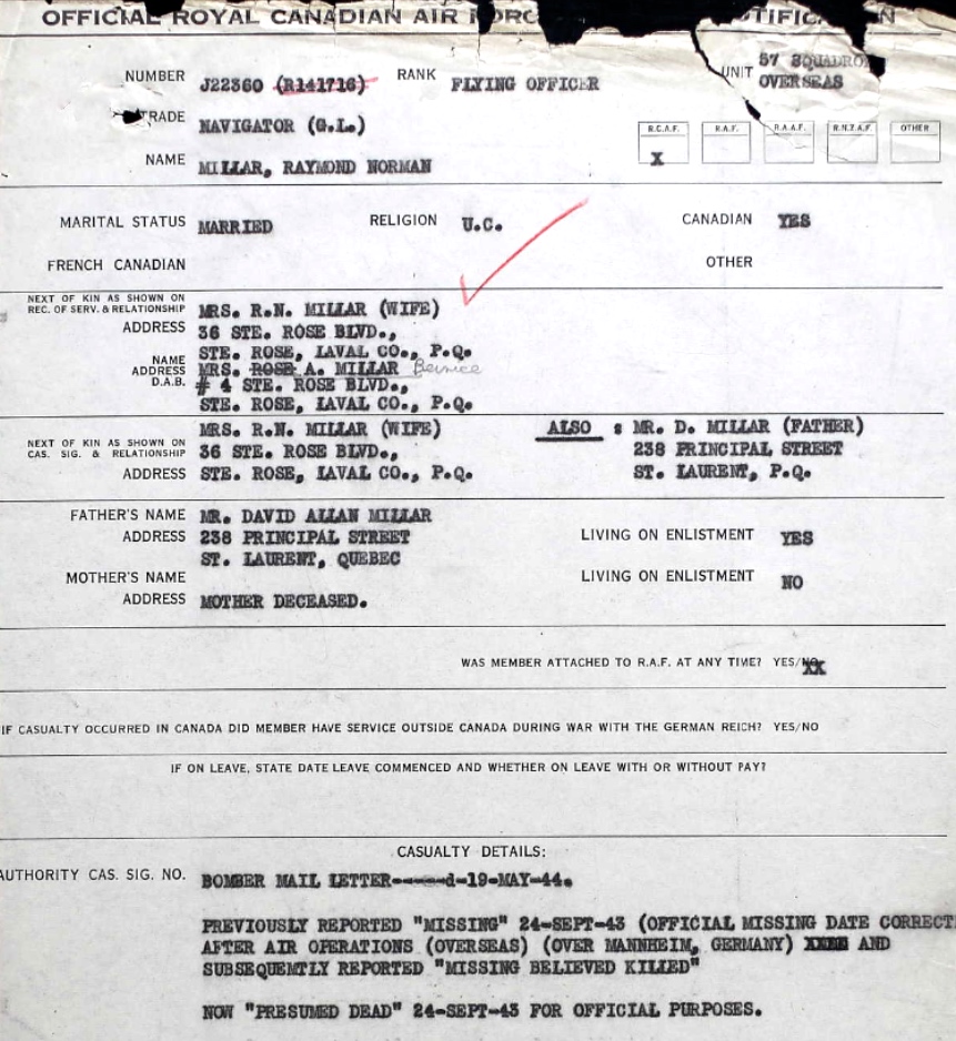 Digital gallery of Flying Officer Raymond Norman Millar