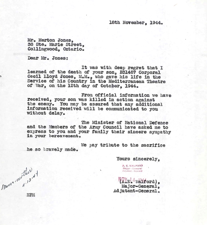 Son of Merton A. and Ethel A. Jones, of Collingwood, Ontario.