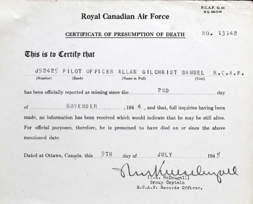 Digital gallery of Pilot Officer Allan Gilchrist Samuel