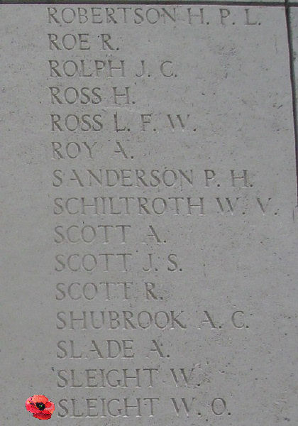 Brother of Private Walter Sleight, who died during service with the Canadian Infantry (Saskatchewan Regiment).