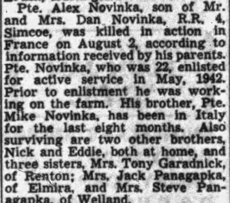 Son of Dan and Kathleen Novinka, of Simcoe, Ontario.