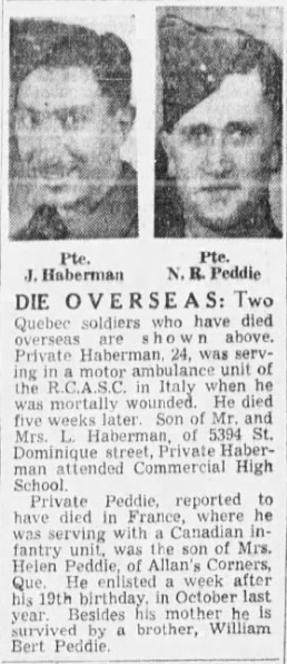 Son of Daniel Russell Peddie and Helen Janet Peddie, of Allan's Corners, Province of Quebec.