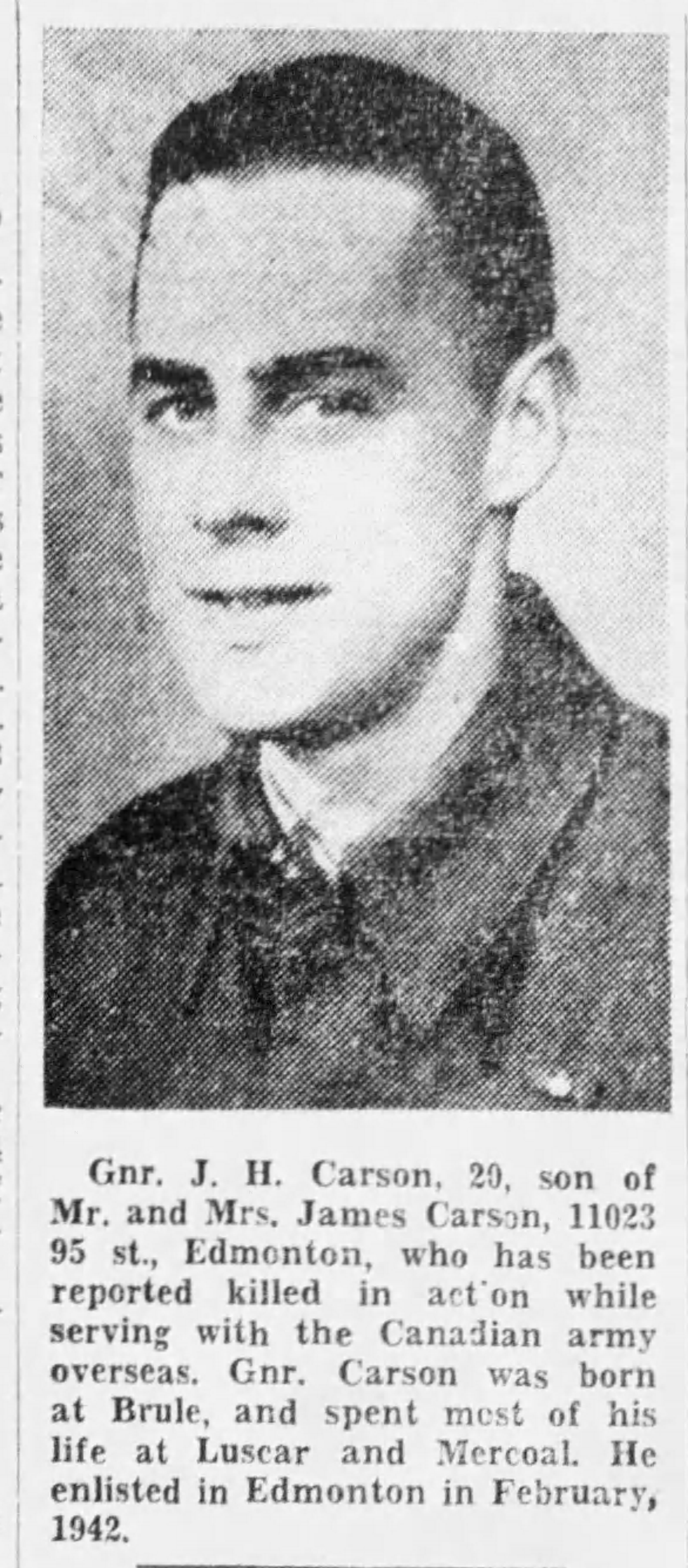 Digital gallery of Gunner James Herbert Carson