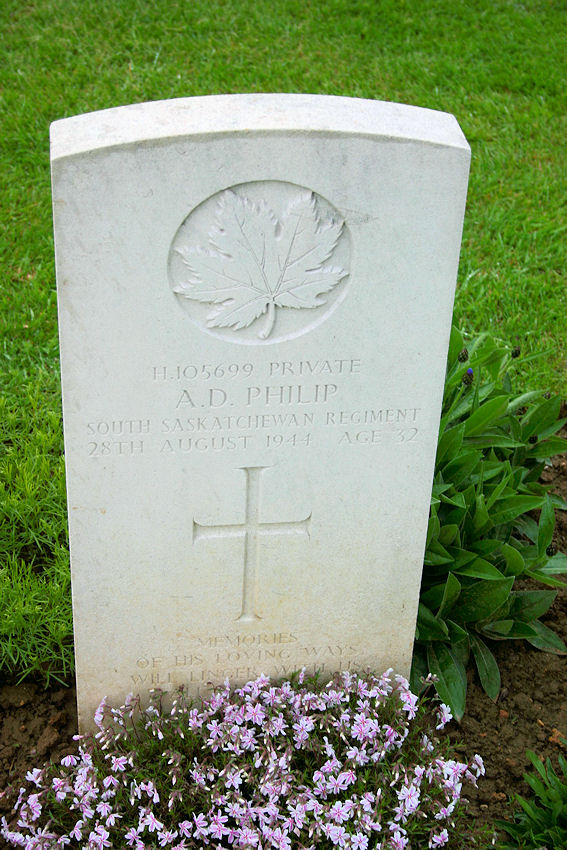 This cemetery lies on the west side of the main road from Caen to Falaise (route N158) and just north of the village of Cintheaux. Bretteville-sur-Laize is a village and commune in the department of the Calvados, some 16 kilometres south of Caen. The village of Bretteville lies 3 kilometres south-west of the Cemetery. Buried here are those who died during the later stages of the battle of Normandy, the capture of Caen and the thrust southwards (led initially by the 4th Canadian and 1st Polish Armoured Divisions), to close the Falaise Gap, and thus seal off the German divisions fighting desperately to escape being trapped west of the Seine. Almost every unit of Canadian 2nd Corps is represented in the Cemetery. There are about 3,000 allied forces casualties of the Second World War commemorated in this site.