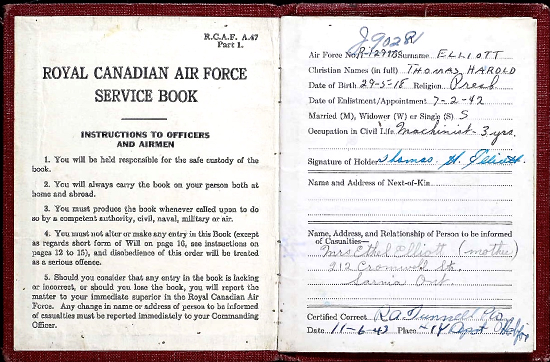 Digital gallery of Pilot Officer Thomas Harold Elliott
