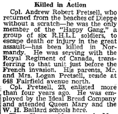 Son of William L. and Lily Pretsell, of Hamilton, Ontario.