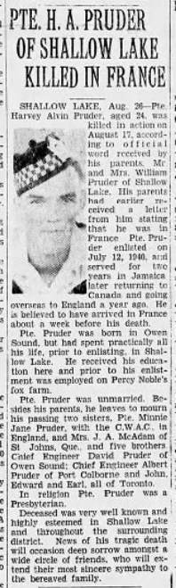 Son of William and Matilda May Pruder, of Shallow Lake, Ontario.