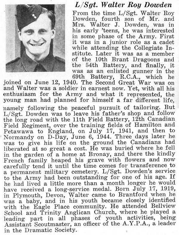 Son of Walter James Dowden and Elsie Violet May Dowden, of Brantford, Ontario.