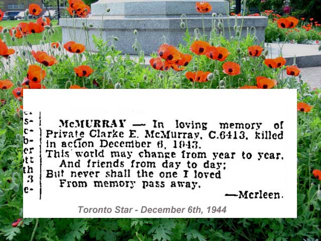 Son of William and Edith Mae McMurray, of Colborne, Ontario.