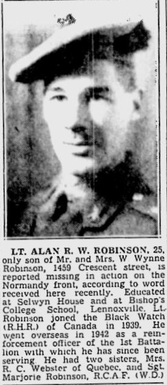 Son of W. Wynne Robinson and C. Claire Robinson, of Montreal, Province of Quebec.