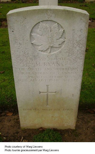 Son of Thomas and Ethel Ryan, of Hamilton, Ontario.