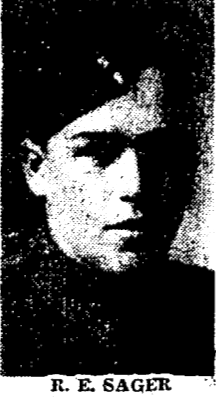 Born in Wilburn, Ontario, 6 August 1921. Son of John Franklin and Ethel May Sager of St. Marys, Ontario. Brother of William, Ernest, Jack, Pansy and Dorothy Sager. Husband of Elsie Mabel Sager, of Basingstoke, Hampshire, England. Pte Sager is commemorated on a bronze plaque on the Cenotaph located in St. Marys, Ontario.
