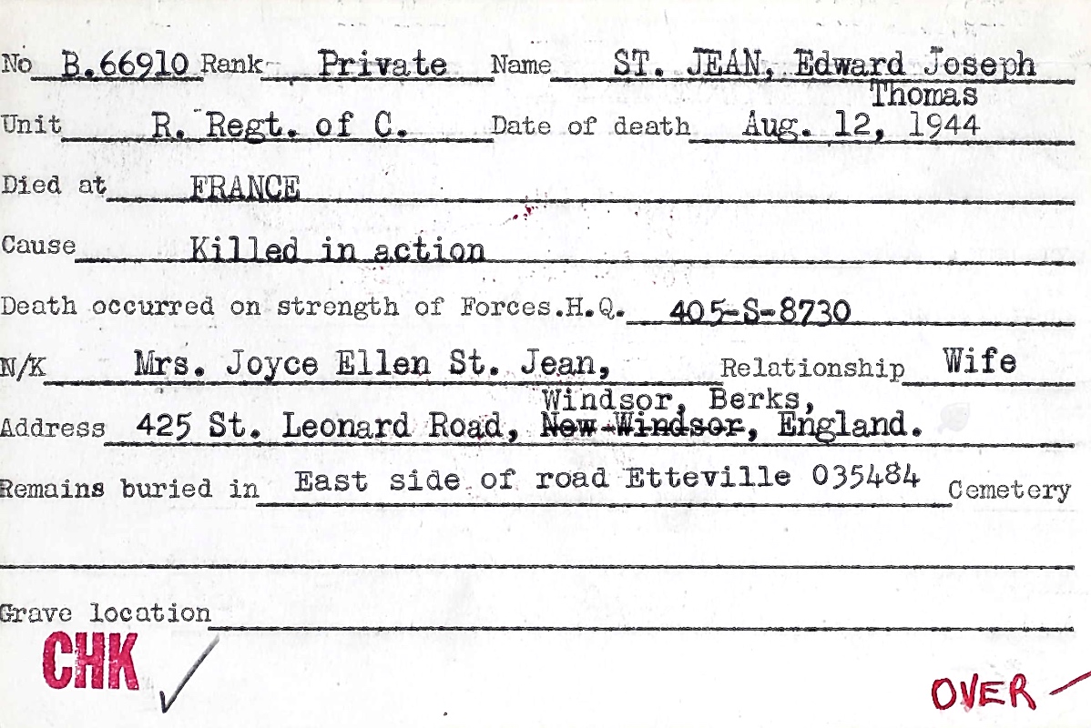 Son of Alfred and Mabel St. Jean. Husband of Joyce E. St. Jean, of Windsor, Berkshire, England.