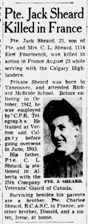 Son of Charles L. and Phyllis M. Sheard, of Vancouver, British Columbia.