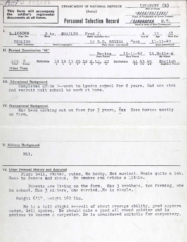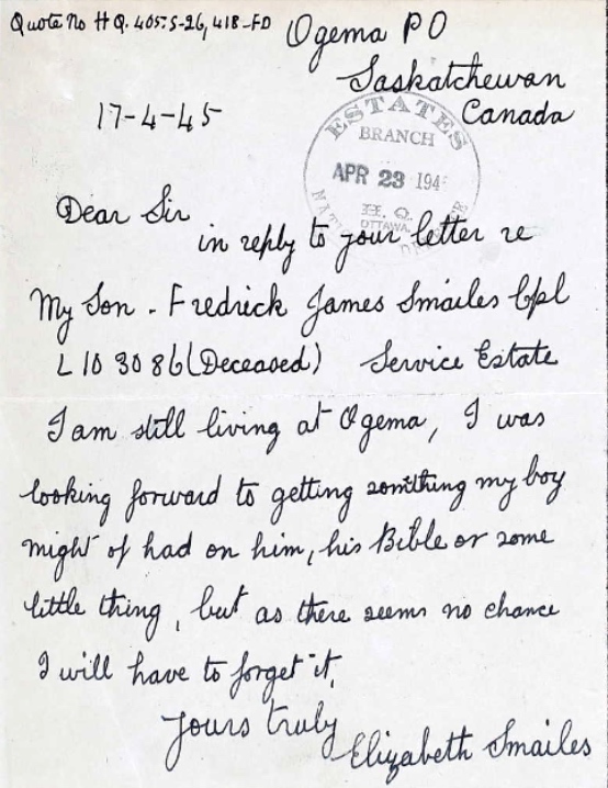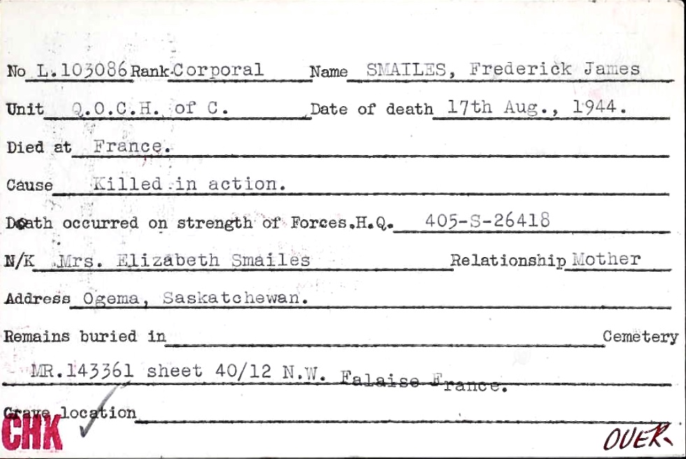 Son of James and Elizabeth Smailes, of Ogema, Saskatchewan.