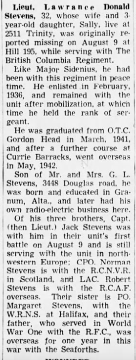 Son of George Lawrance Stevens and Etta Stevens; husband of Jessie Marion Stevens, of Vancouver, British Columbia.
