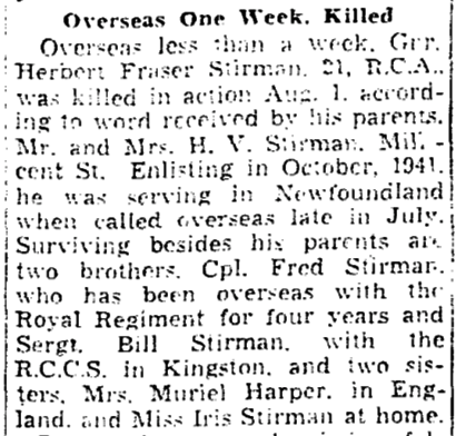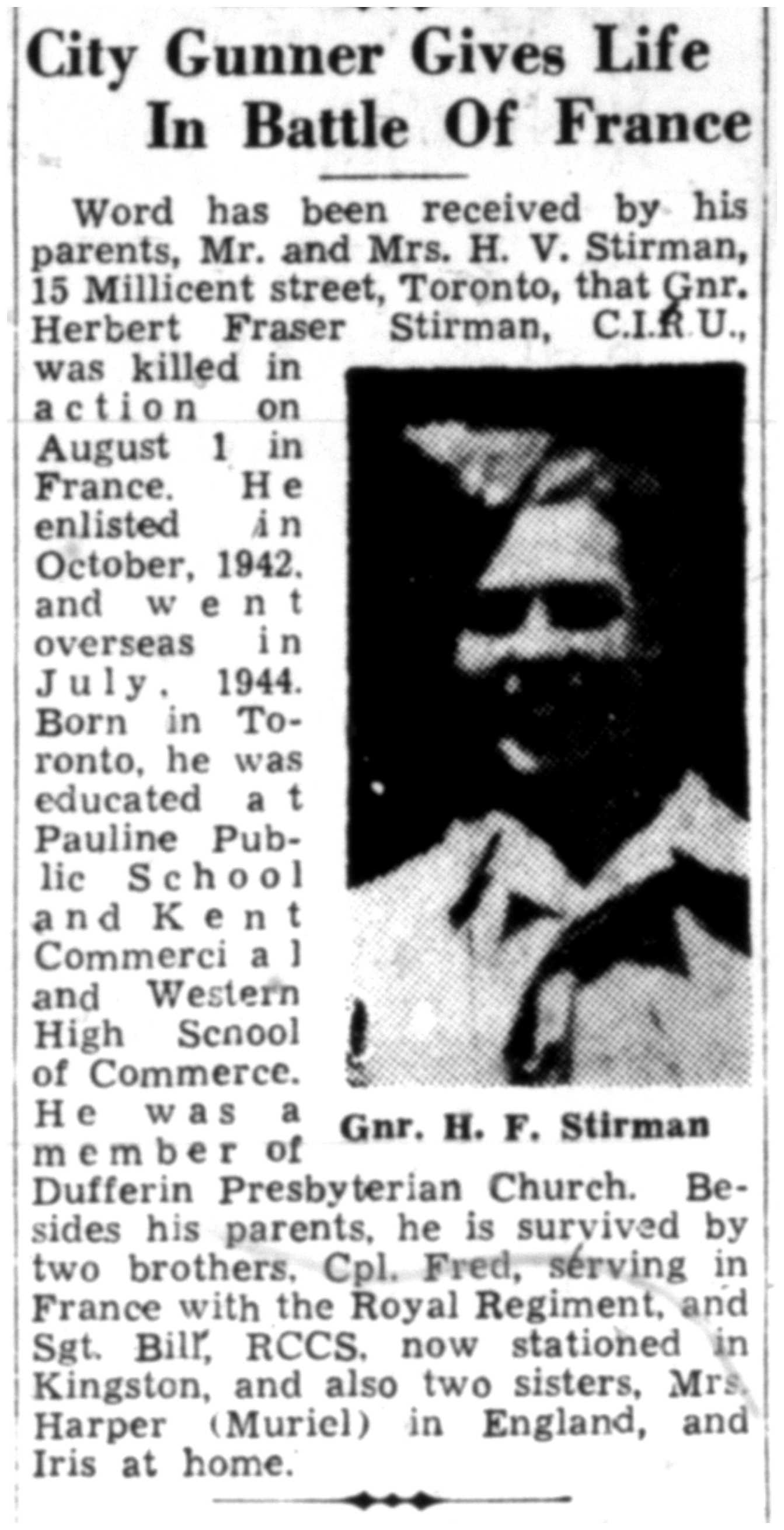 Son of Herbert Victor and Caroline Stirman. of Toronto, Ontario.