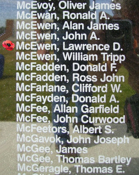 Page 190 of the Second World War Book of Remembrance.