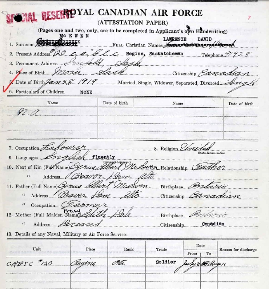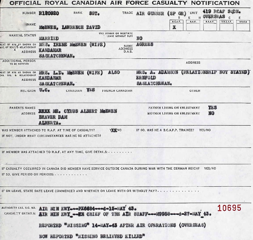 Digital gallery of Flight Sergeant Lawrence David McEwen