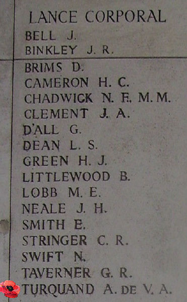 HERE ARE RECORDED NAMES OF OFFICERS AND MEN WHO FELL IN YPRES SALIENT BUT TO WHOM THE FORTUNE OF WAR DENIED THE KNOWN AND HONOURED BURIAL GIVEN TO THEIR COMRADES IN DEATH.