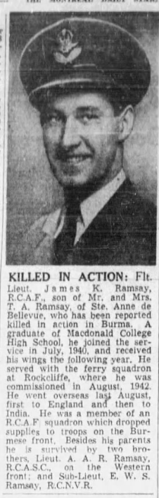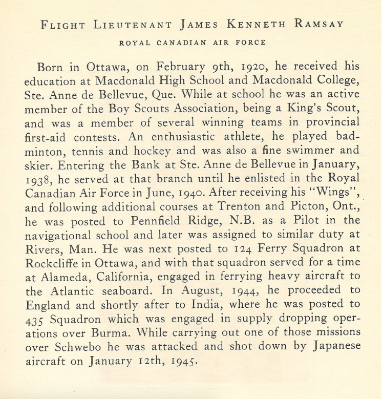Son of Thomas Alfred and Margaret Read Ramsay, of Ste. Anne de Bellevue, Province of Quebec, Canada.