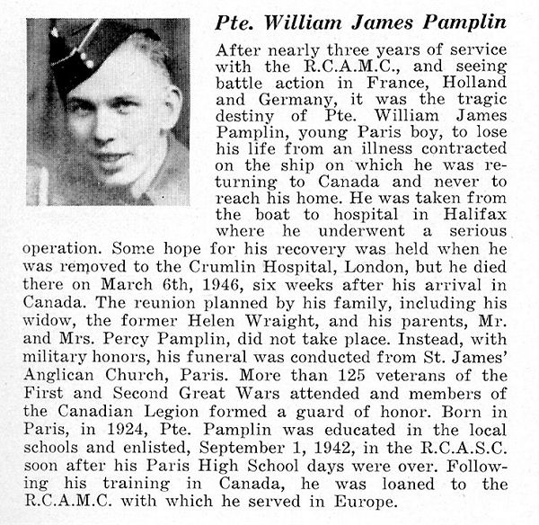 Son of Percy and May Pamplin, of Paris; husband of Helen E. Pamplin, of Paris.